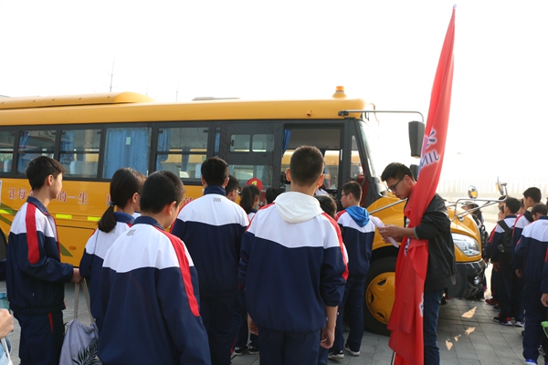 到达红荷湿地景区,孩子们下车进场井然有序。